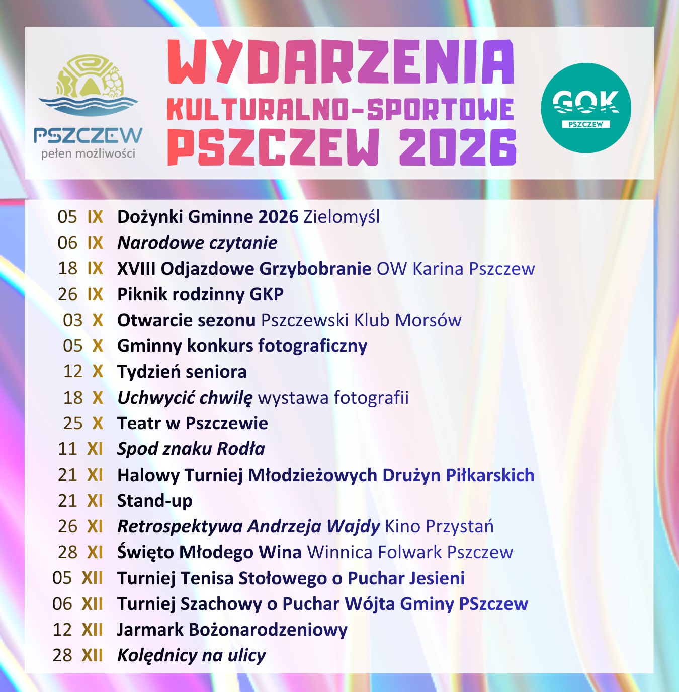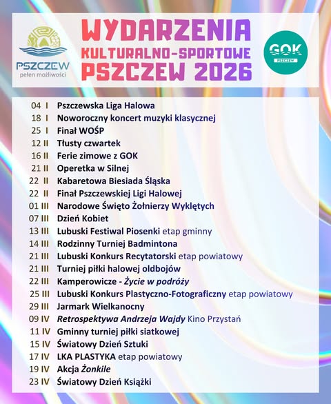 Z radością prezentujemy Państwu Kalendarz Wydarzeń w Gmina Pszczew na 2026 rok.