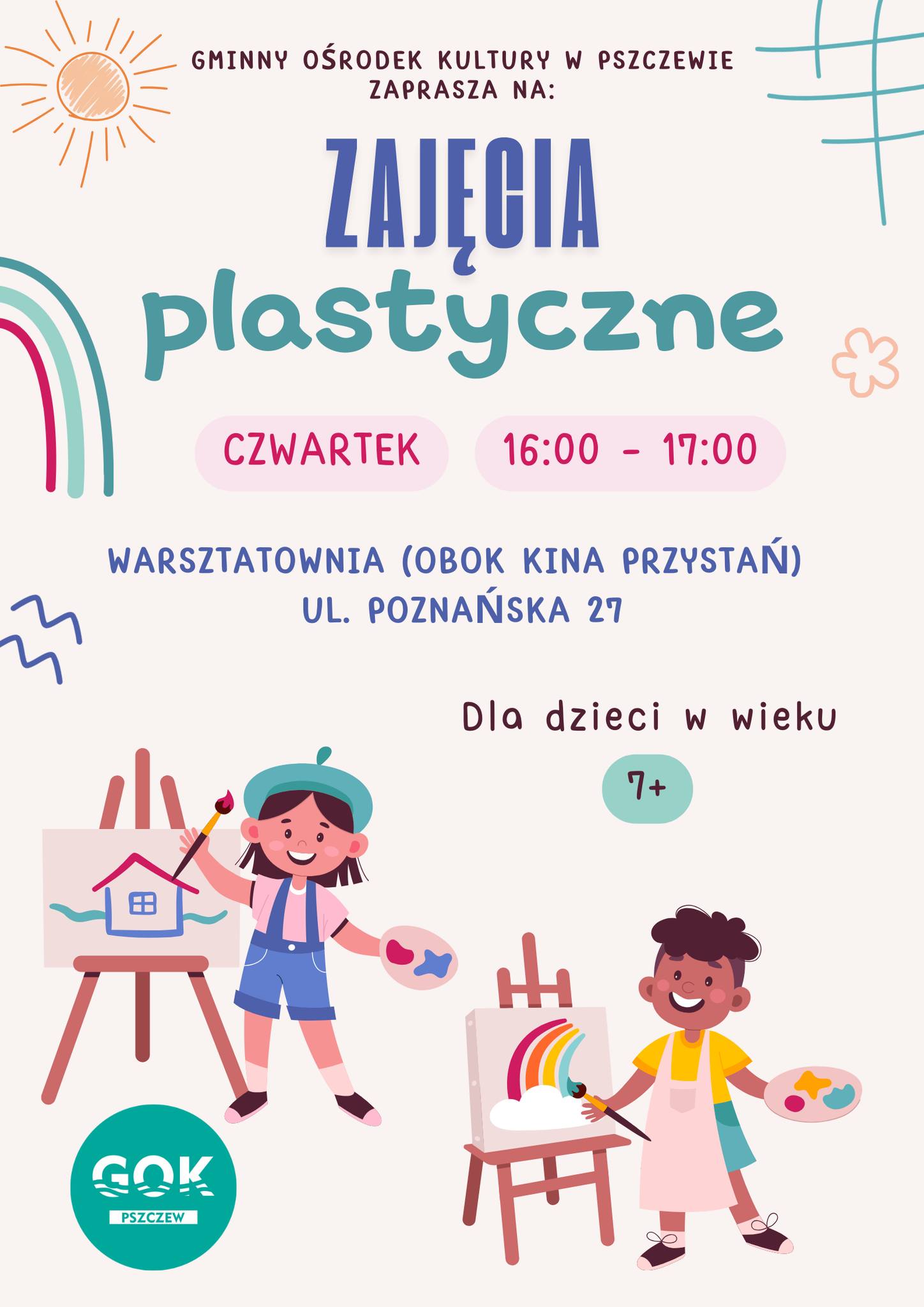 Gminny Ośrodek Kultury w Pszczewie zaprasza dzieci od 7. roku życia na zajęcia plastyczne pełne kolorów, wyobraźni i dobrej zabawy!